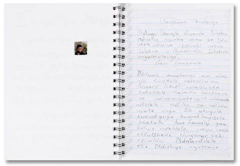 Employing a scrapbook aesthetic with handwritten notes, I carry Her photo with Me is a means for Sobekwa to engage both with the memory of his sister and the wider implications of such disappearances – a troubling part of South Africa’s history. The book complements his wider work on fragmentation, poverty, and the long-reaching ramifications of apartheid and colonialism across all levels of South African society.